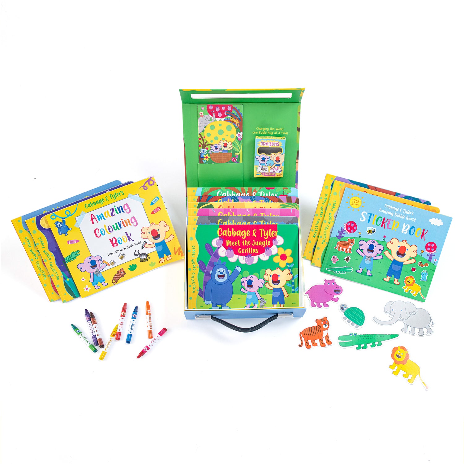 來手提套書之中探索迪朵世界的魔力吧!手提套書中包括10本令小朋友著迷故事書、精美的貼紙書與 170 張有趣貼紙,再加上一本 20 頁的著色書和蠟筆!讓小朋友們快樂的在迪朵世界中盡情探索。