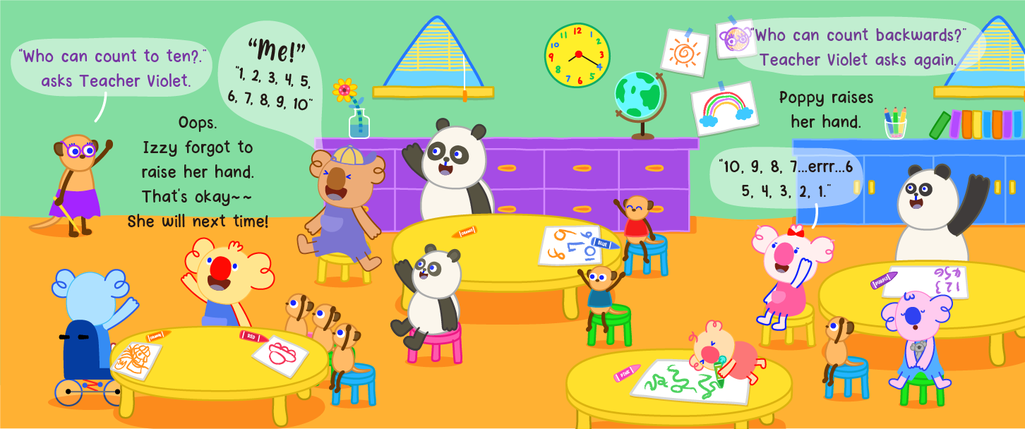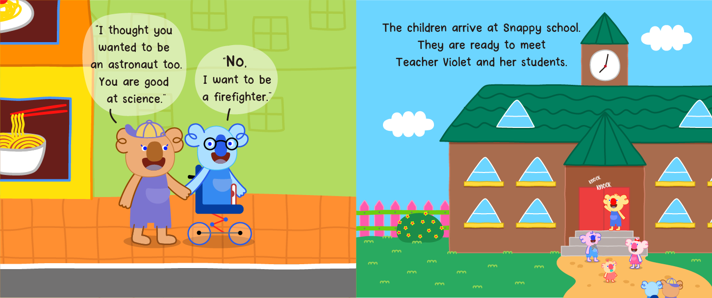 蓋比、泰勒和朋友們參觀了 Snappy 學校維奧萊特老師的教室。